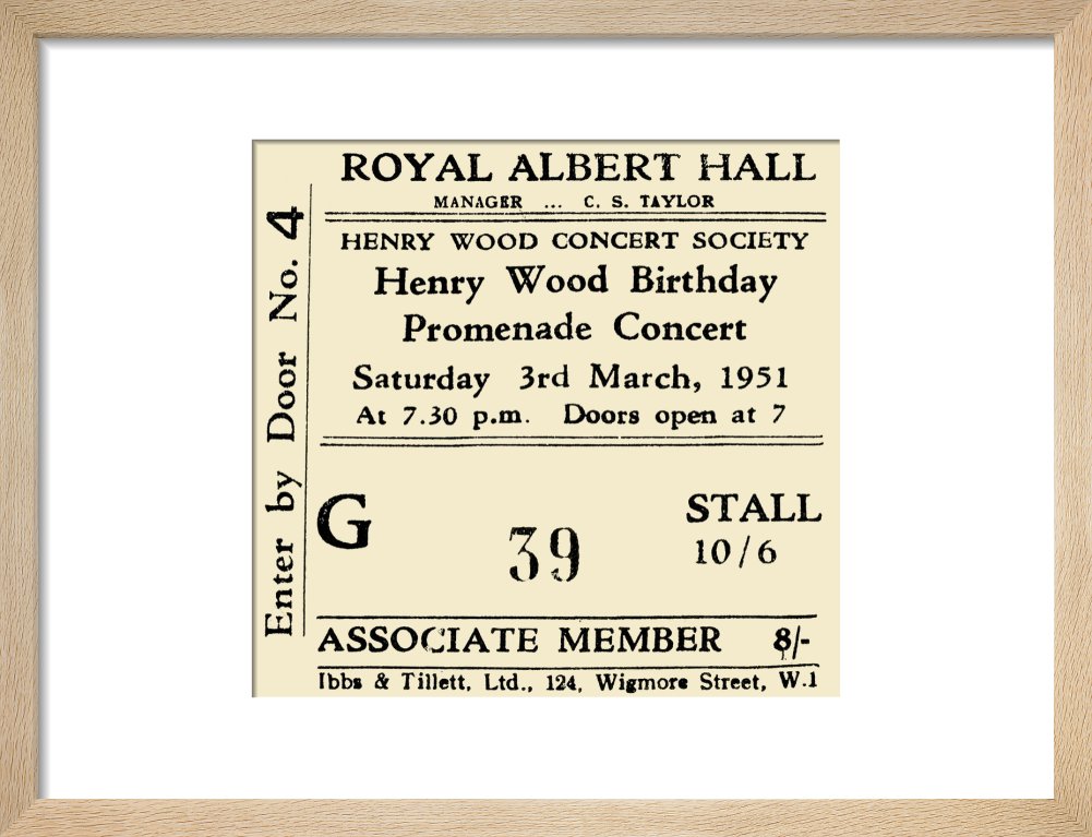 Bring a piece of classical music history to your home with this Henry Wood Birthday Promenade Concert at the Royal Albert Hall ticket poster.