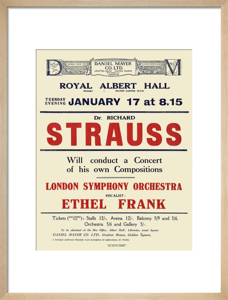 Bring a piece of classical music history to your home with this Dr Richard Strauss Concert at the Royal Albert Hall handbill cover poster.