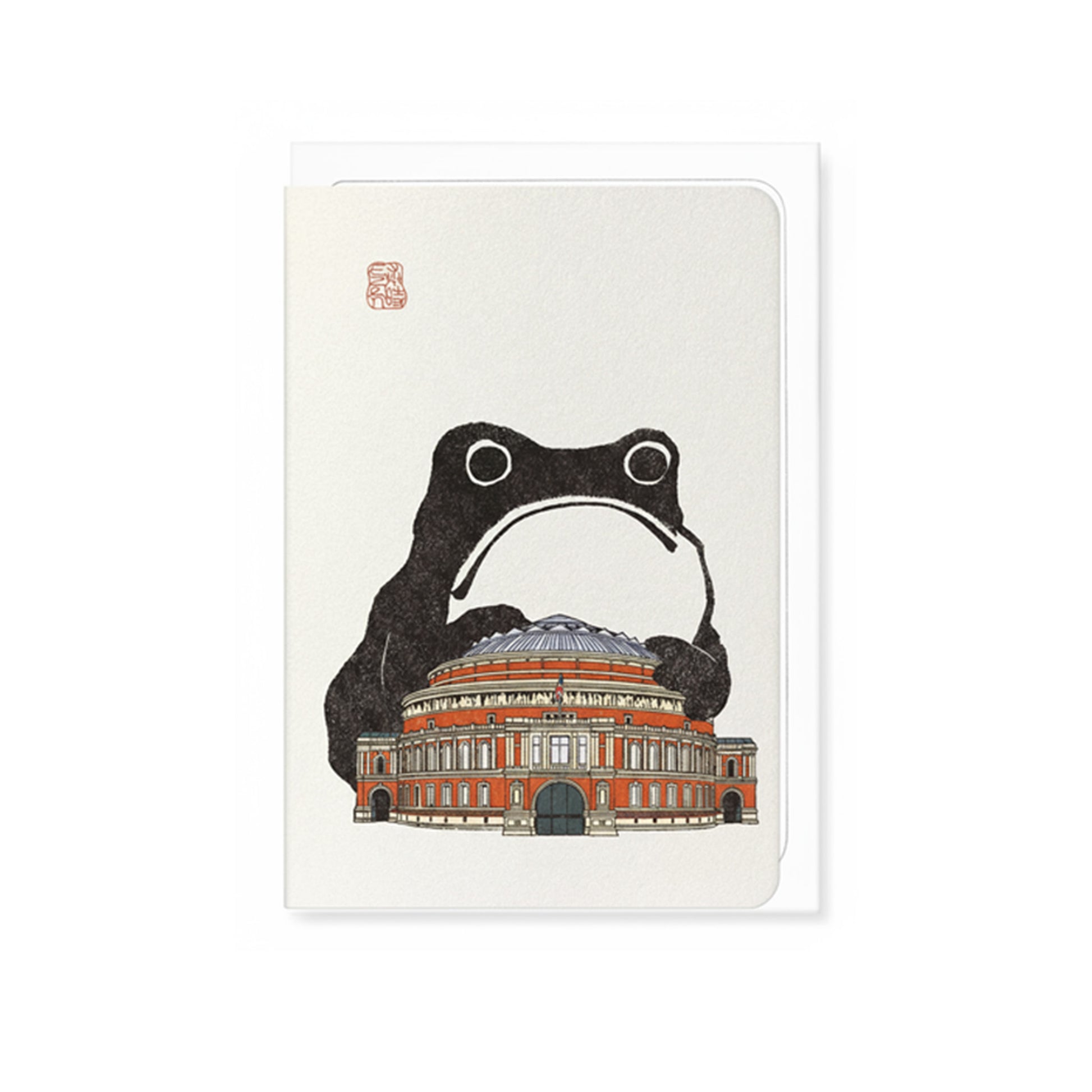 A contemporary Royal Albert Hall adaptation of a Japanese woodblock print dating 1814. The Japanese word for frog is “kaeru”, which can also mean “to return”, so the frog is considered to bring good luck, representing good things returning.